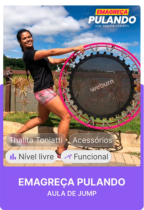 Agora, você pode ter acesso PRA SEMPRE ao meu app de saúde, Weburn. Lá você vai encontrar meus treinos de até 10 minutos que ativam os músculos faciais e ajudam a suavizar rugas e linhas de expressão. E o resultado? Rosto mais firme e com aparência mais jovem em pouco tempo.