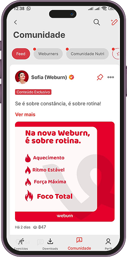Pela primeira vez lançamos uma IA com o conhecimento de toda a equipe e metodologia Weburn para acompanhar 24/7 e personalizar seus treinos para você transformar seu corpo e sua vida.